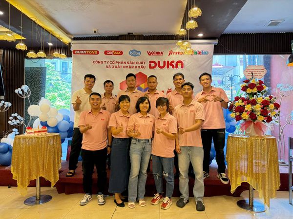🎉🎉 CHÚC MỪNG SINH NHẬT DUKA 7️⃣ TUỔI 🎉 17/08/25 Trải qua 7 năm xây dựng và phát triển, Công ty DUKA đã và đang giữ vững vị thế là một trong những công ty sản xuất và phân phối đồ chơi trẻ em lớn mạnh nhất cả nước. 7 năm – một chặng đường không ngắn, đủ để khẳng định thương hiệu, chất lượng và niềm tin trong lòng hàng triệu khách hàng Việt Nam. Chúc Công ty DUKA ngày càng phát triển thịnh vượng, vươn xa hơn nữa, tiếp tục sứ mệnh đưa những bộ đồ chơi An toàn và Chất lượng tới tay người tiêu dùng#SinhnhatDUKA#DUKA7tuoi Bài viết liên quan Hội nghị khách hàng Hoàng Long 2021 Giúp trẻ phát triển khả năng sáng tạo Bé hào hứng khám phá Ngôi nhà ngọt ngào Hãy đưa con đi khắp thế giới với đồ chơi ghép hình Tàu hỏa thành phố Có điều gì trong bộ ghép hình Tàu hỏa thành phố mà con say mê tới vậy :D? Con học được gì qua bộ ghép hình Đồn công an? Hướng dẫn mẹ làm đồ chơi cho trẻ từ chai nhựa siêu đáng yêu List đồ chơi cho bé trai “nhất định phải mua” 4 yếu tố "cực quan trọng" khi lựa chọn đồ chơi cho trẻ an toàn Bí quyết dạy trẻ nói qua 6 món đồ chơi cho bé chậm nói 2 món đồ chơi lắp ráp dành cho con gái mẹ “không thể bỏ qua”