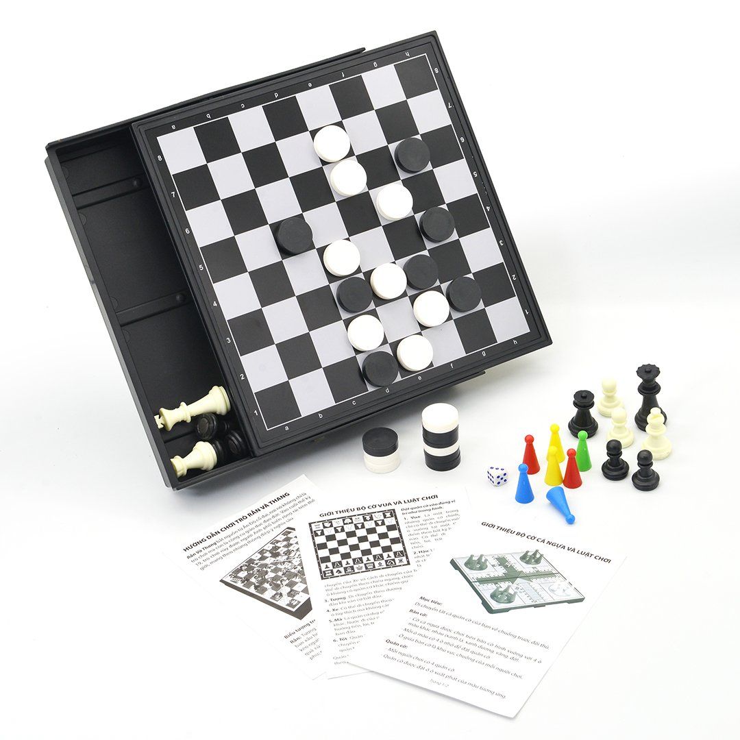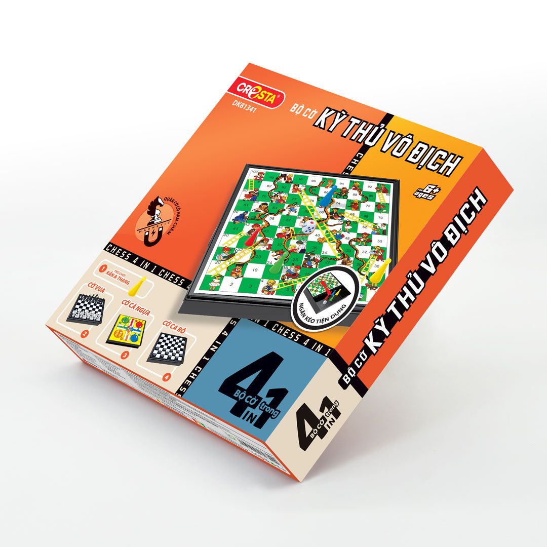 Bàn cờ 4 trong 1 được tích hợp trong 1 bàn cơ như : Cờ vua, cờ caro, cờ cá ngựa, trò chơi rắn & thang.. giúp các bé thỏa sức thi triển và trải nghiệm các bộ môn đầy trí tuệ và sáng tạo này.