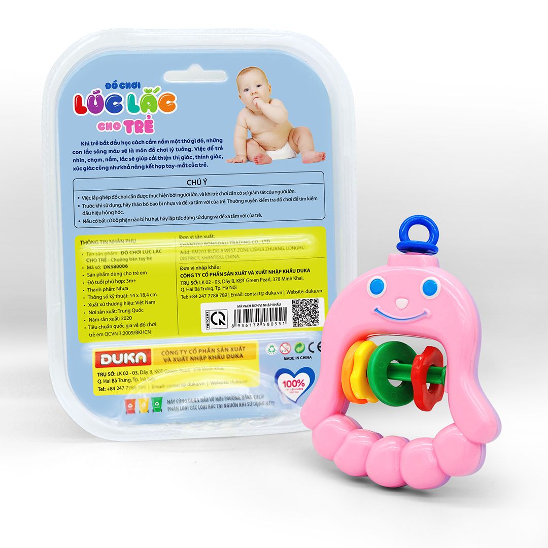 Khi trẻ bắt đầu học cách cầm nắm một thứ gì đó, những con lắc sáng màu sẽ là món đồ chơi lý tưởng. Việc để trẻ nhìn, chạm, nắm, lắc sẽ giúp cải thiện thị giác, thính giác, xúc giác cũng như khả năng kết hợp tay - mắt của trẻ.