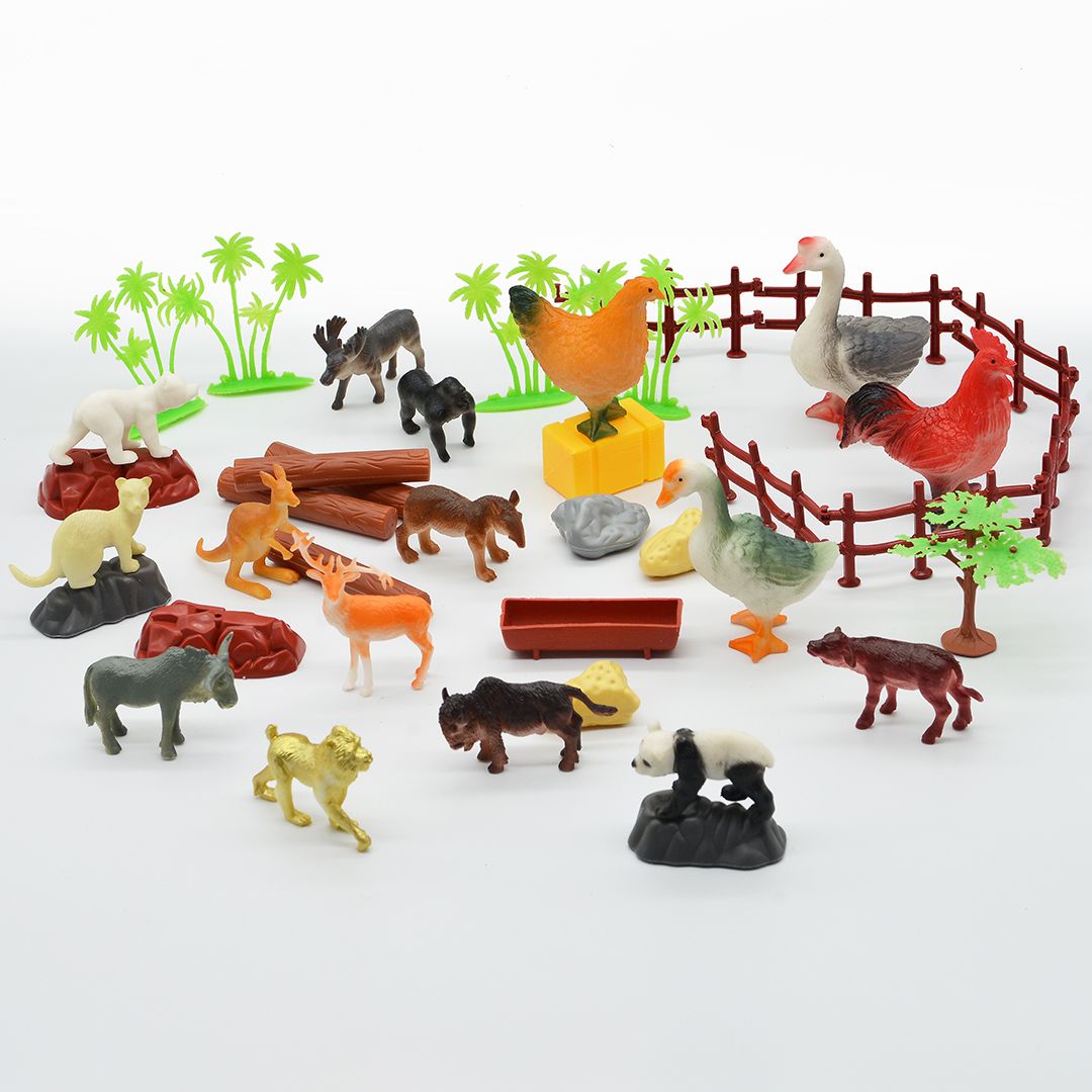 Set mô hình 40 con vật bao gồm : 16 con vật (4 con vật size to và 12 con size nhỏ) + 24 Chi tiết Tiểu Cảnh. - Mô Hình Con Vật làm từ nhựa PP, ABS an toàn, sơn chất lượng cao chuyên dùng cho đồ chơi trẻ em không phai, không dính, màu sắc tươi sáng, không góc cạnh. Mô hình động vật 40 chi tiết mô tả thật và chân thực nhất các con vật nhưng với kích thước được tối giản. Đồ chơi giúp bé nhận biết và làm quen với các con vật nuôi trong nhà và các loài vật quanh em, trong vườn bách thú. Quan sát, sờ chạm để học nhận biết nhiều bạn động vật khác nhau - Tạo nên một vườn thú mini sinh động bằng các mô hình và tiểu cảnh có sẵn - Cùng đoán tên các loài vật và thi xem ai đoán được tên nhiều loài vật hơn - Sắp xếp các mô hình loài vật theo độ lớn hoặc chiều cao tăng dần - Đem các con vật giấu đi và cùng đi tìm chúng như một trò chơi đi tìm kho báu thú vị. .
