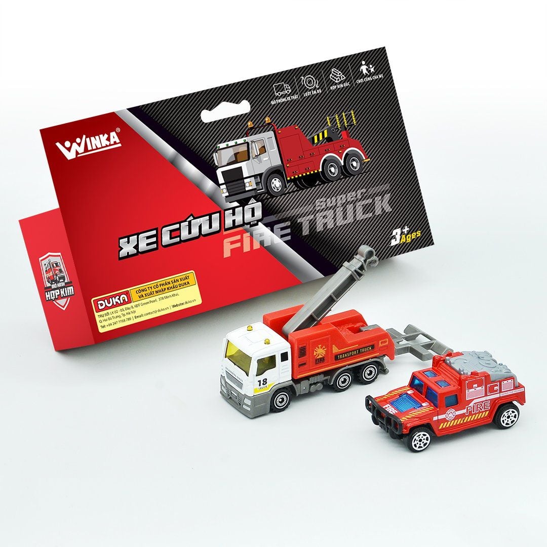 Set đồ chơi bao gồm 2 xe được thiết kế theo mô hình của những chiếc xe dành cho cảnh sát cứu hỏa, cứu hộ, cứu nạn.