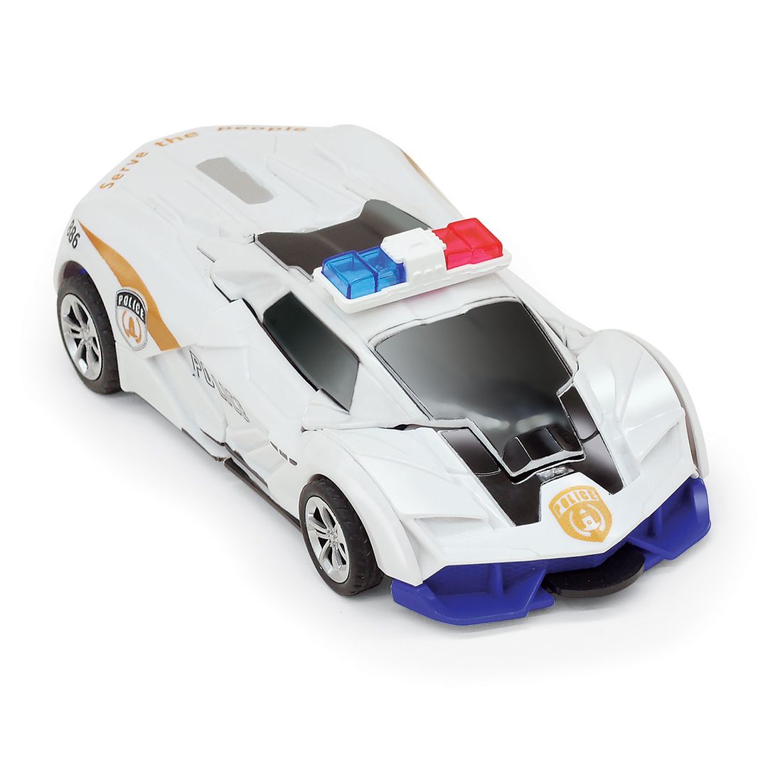 Với món đồ chơi biến hình, từ mô hình chiếc siêu xe cảnh sát có thể biến hình thành một chiến binh robot khi nhấn nút hoặc khi chạy với tốc độ và nút chạm vào lực nhất định.