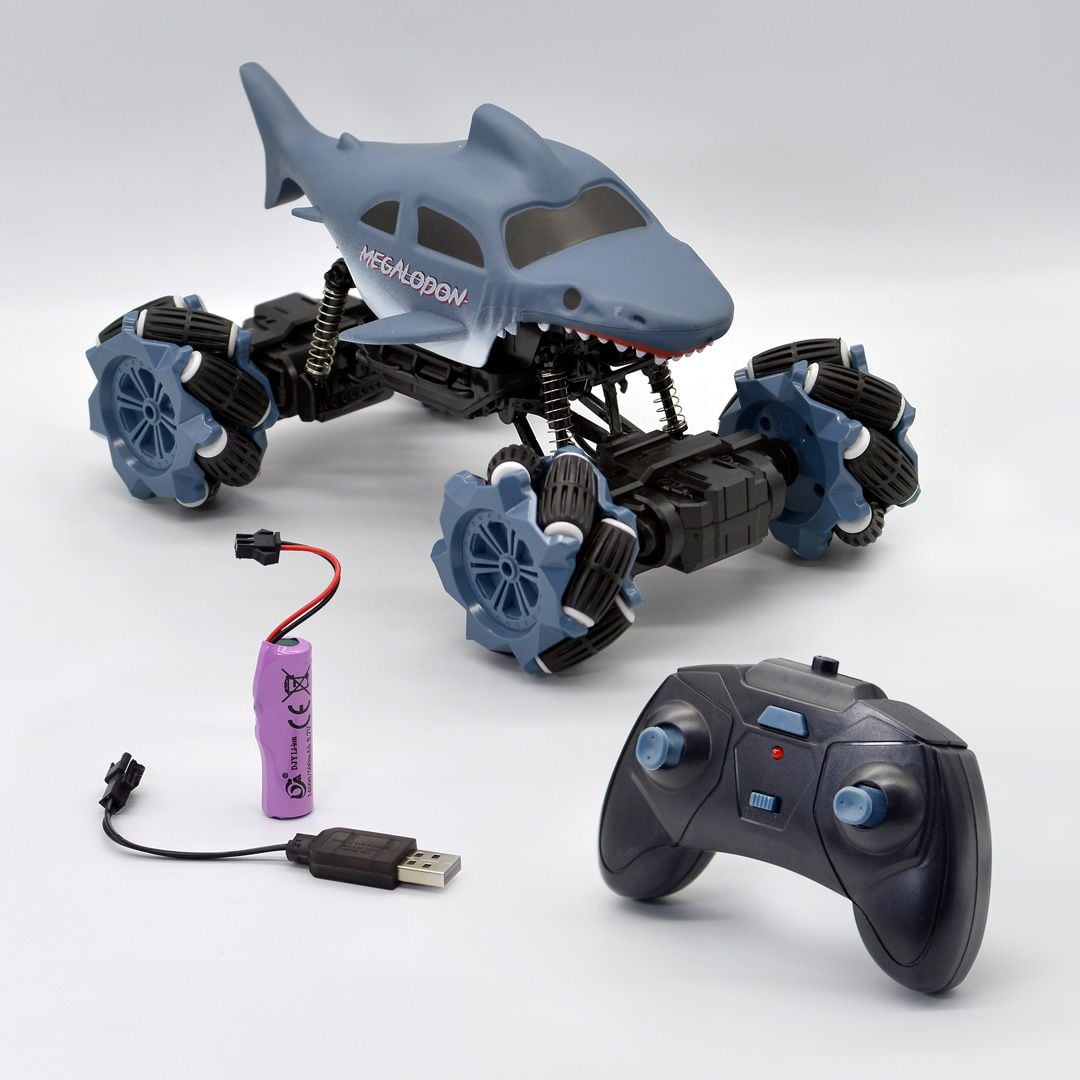 Đồ chơi xe điều khiển được thiết kế với mô hình chú cá mập ngộ nghĩnh, chất liệu hợp kim độ bền cao, bánh xe được thiết kế bằng hệ thống con lăn giúp xe chuyển động linh hoạt,chống trơn trượt,giảm xóc siêu hạng chinh phục mọi địa hình.
